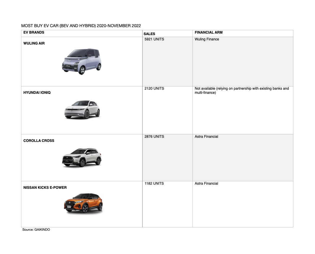 In Indonesia, EV financing is much supported by state-owned banks and multifinance. Still, there is a trend that EV producers to use their own financial wing to provide that financing to their customers. Hyundai and Wuling, which took an early step in selling BEV cars in Indonesia's market and leading BEV sales in the country, have their own financing and insurance companies in their international market.